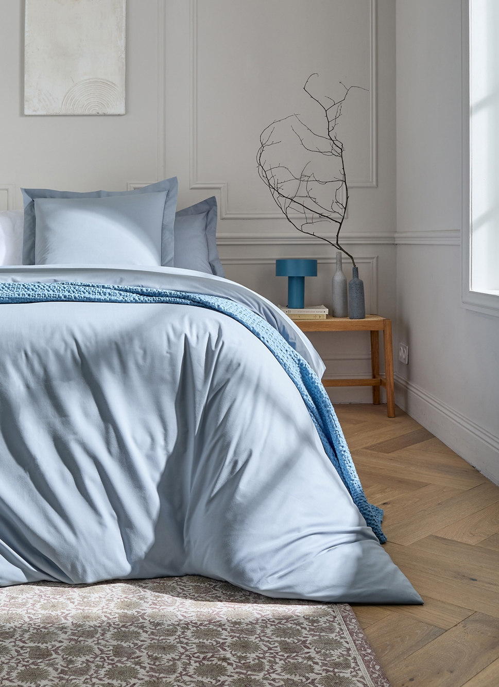 HOUSSE DE COUETTE PERCALE DE COTON CIEL