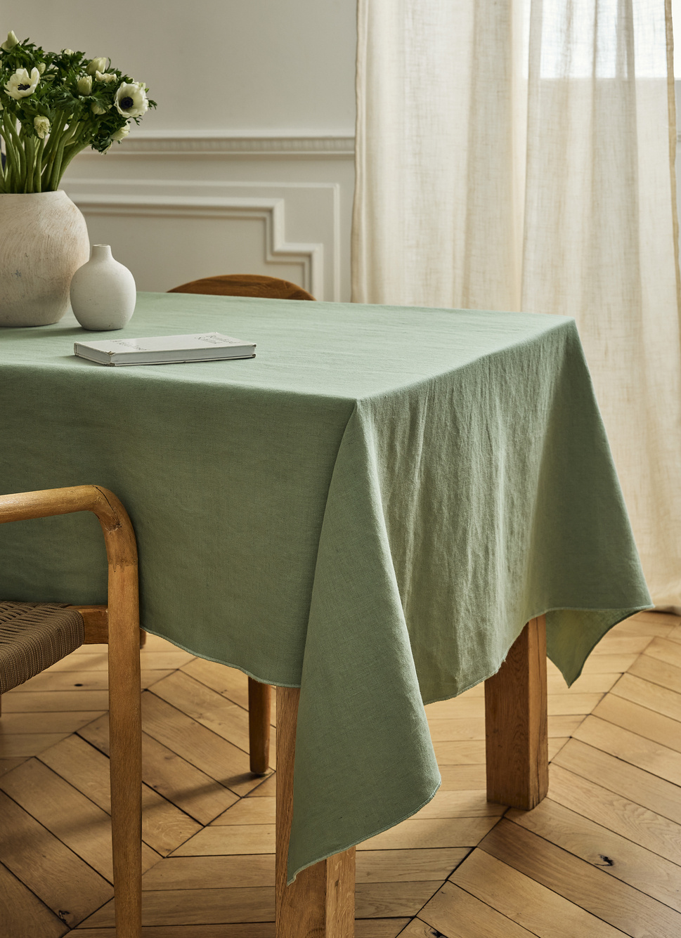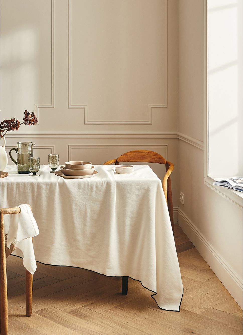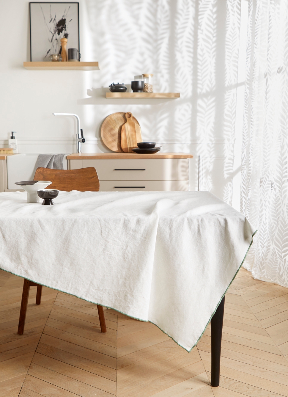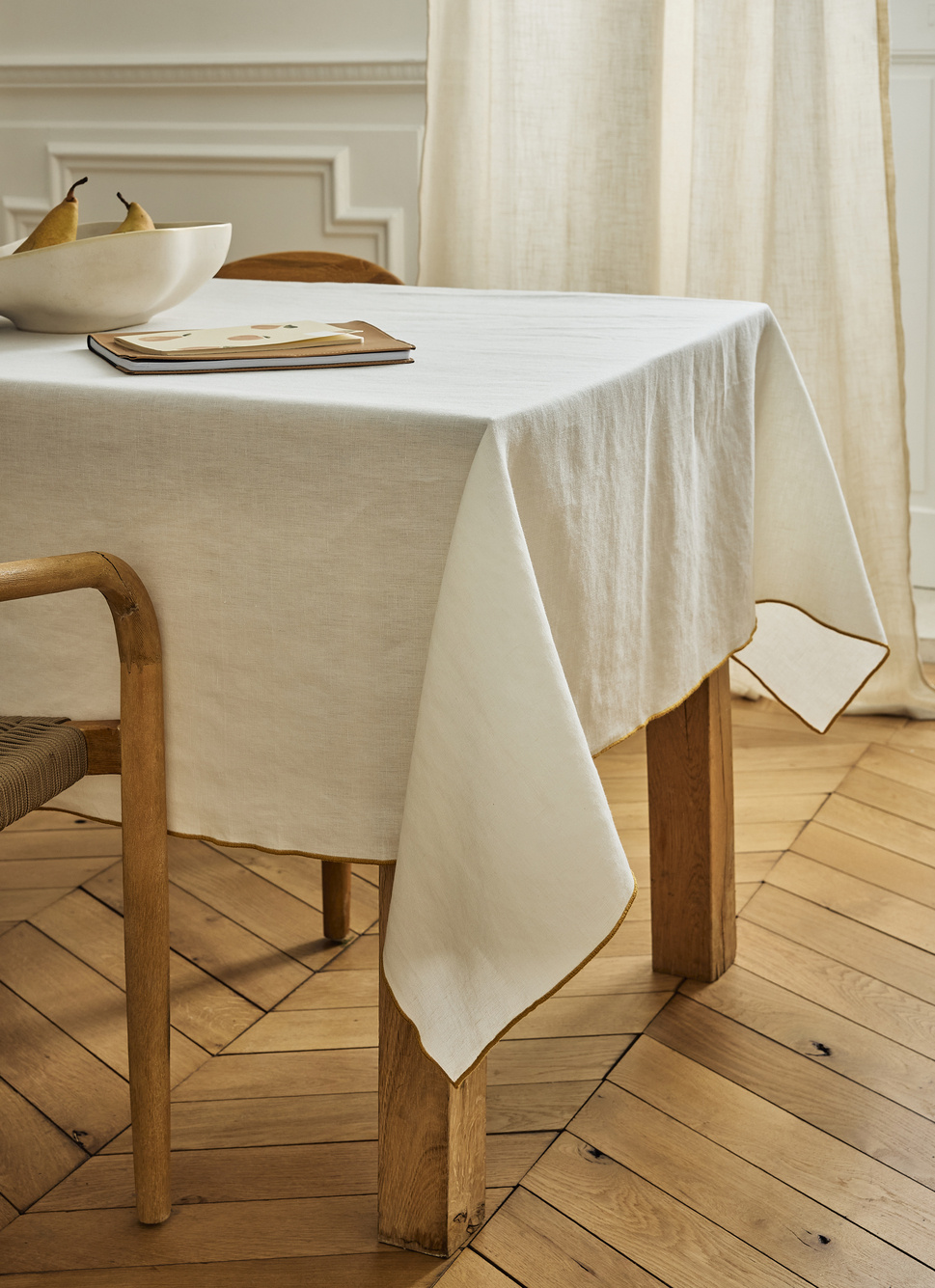 NAPPE UNIE à BOURDON CONTRASTÉ EN COTON ET LIN OSIER