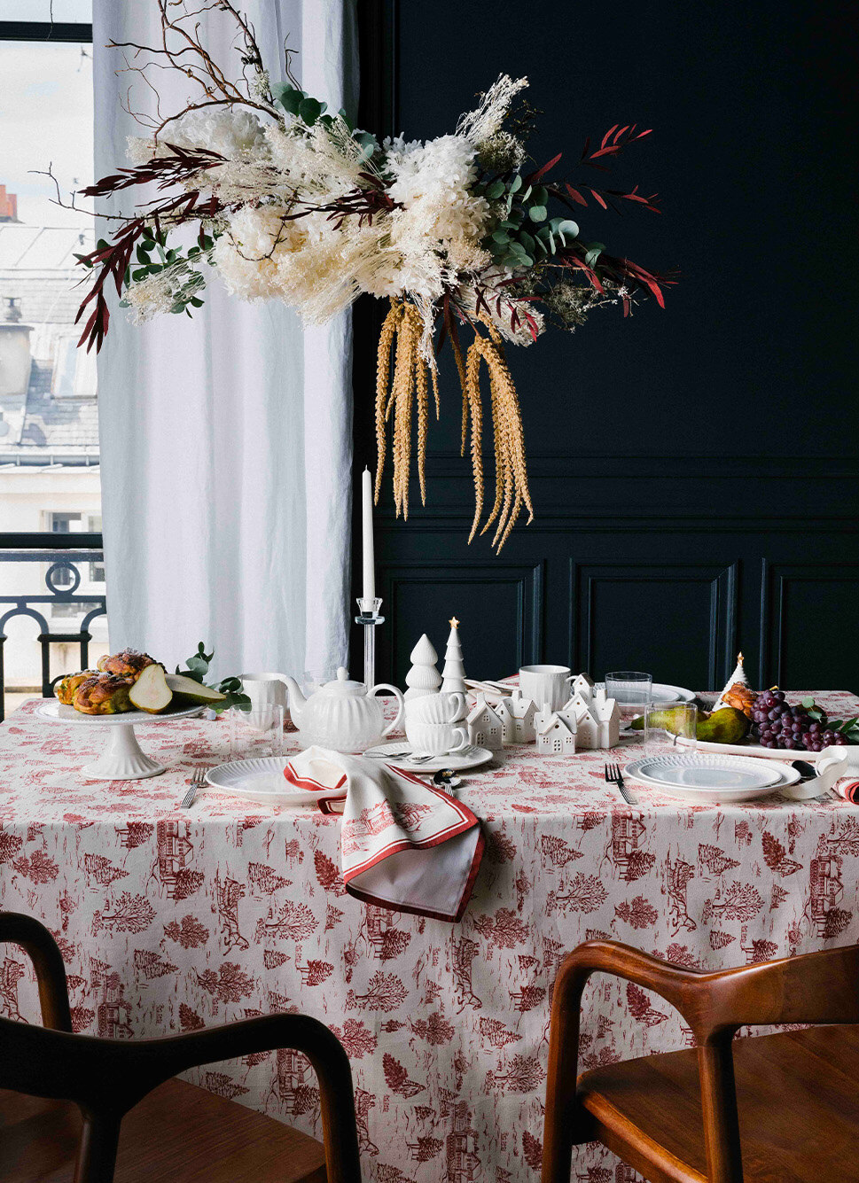 NAPPE EN COTON ANTI-TACHE SCÈNES D'HIVER NATUREL/ROUGE
