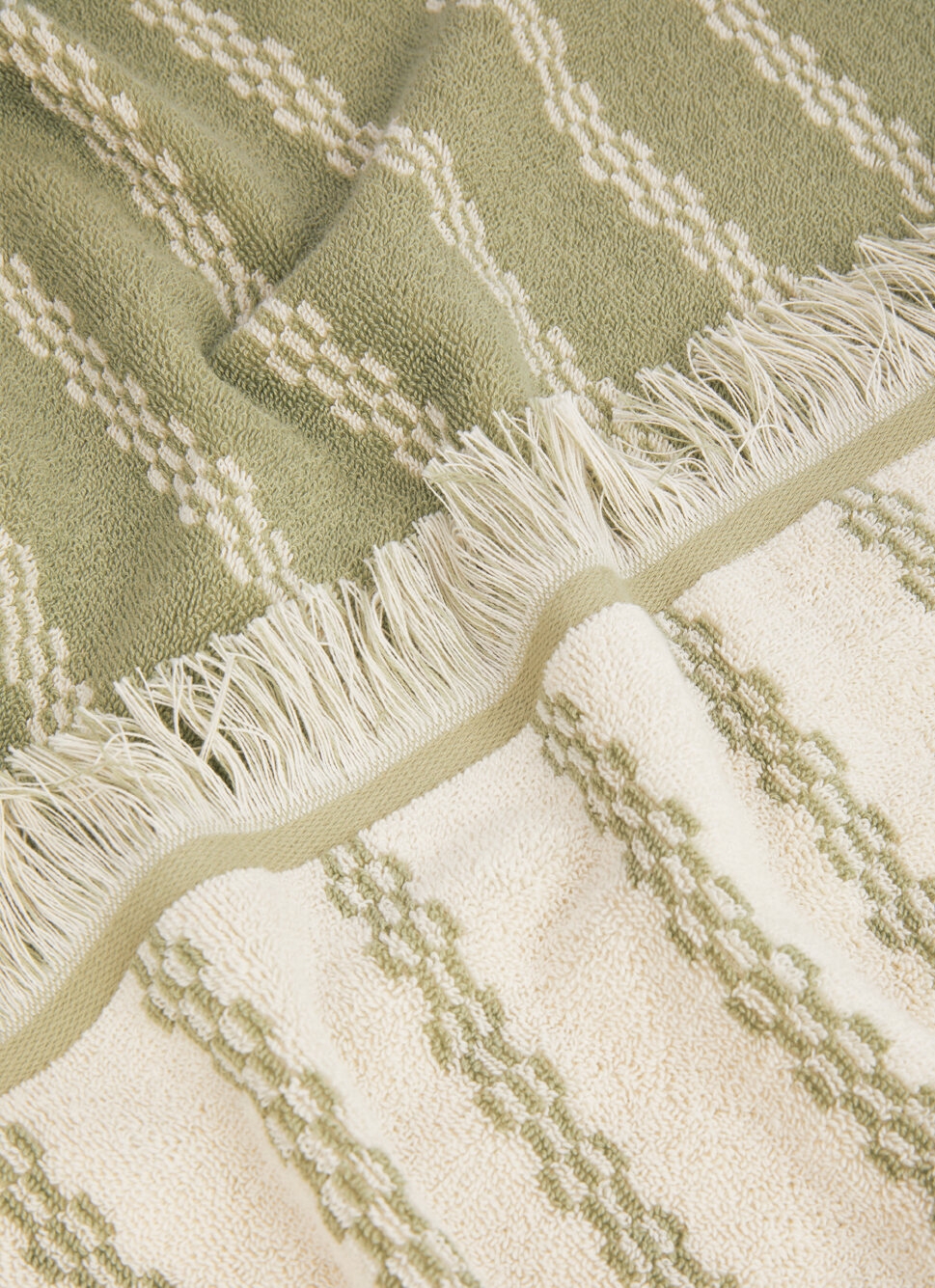 DRAP DE DOUCHE JACQUARD à RAYURES BICOLORES vert