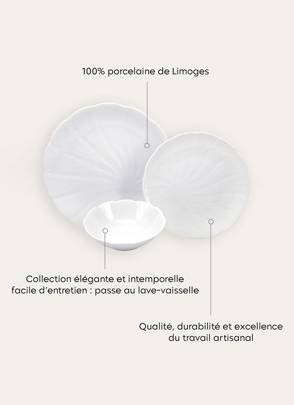 ASSIETTE à DESSERT EN PORCELAINE DE LIMOGES TAHITI BLANC