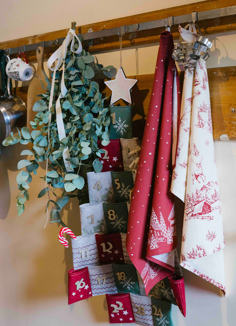 TORCHON EN COTON IMPRIMÉ MONTAGNE NATUREL/ROUGE